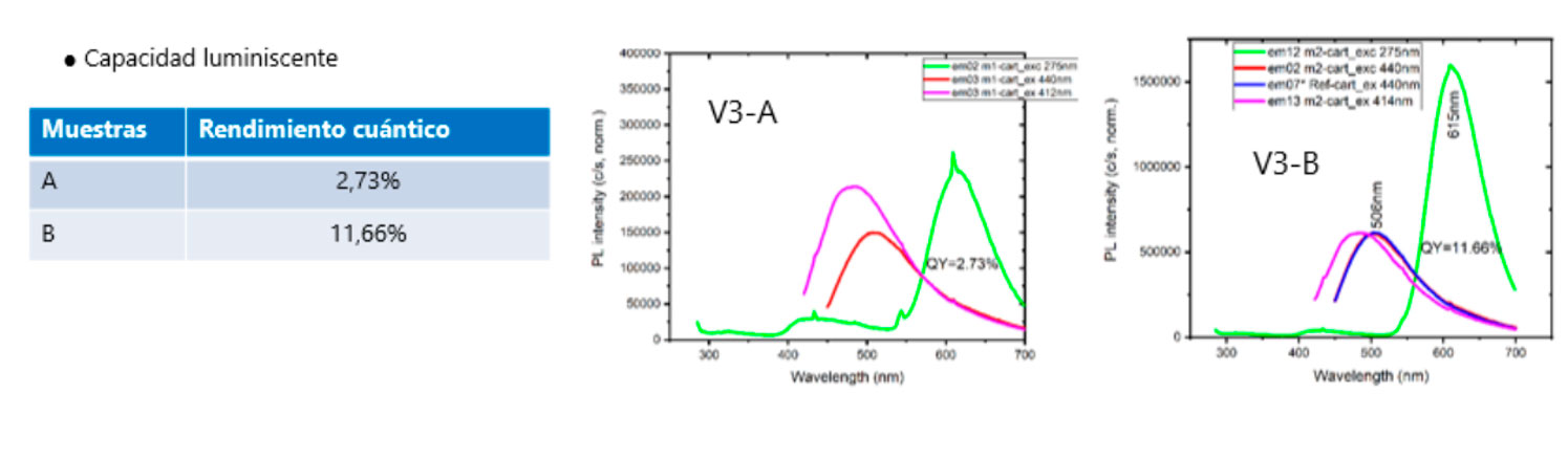 Además, se logró una dispersión homogénea y estable de los complejos luminiscentes, aunque la formulación final presentó inestabilidad, lo que impidió realizar los ensayos requeridos para el marcado CE.