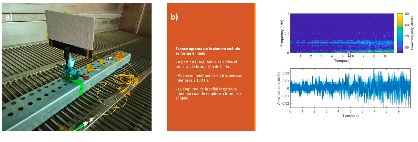 • Un recubrimiento activo calefactable, basado en el efecto Joule, con consumo energético entre 2,5 y 3,8 kW/m² y tiempos de respuesta inferiores a 30 segundos para eliminar hielo formado.